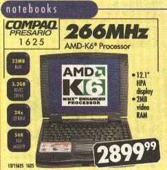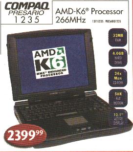 Compaq Presario 1235 Notebook with the with the AMD K6 266 MMX processor, for $2399 (98-11-26 Future Shop)