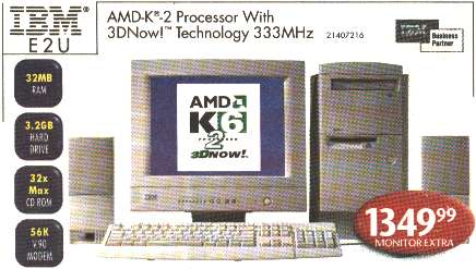 IBM Aptiva E2U with the AMD K6-2 333 3DNow! processor, 32Mb, for $1349 (98-11-26 Future Shop)