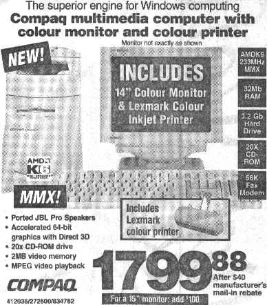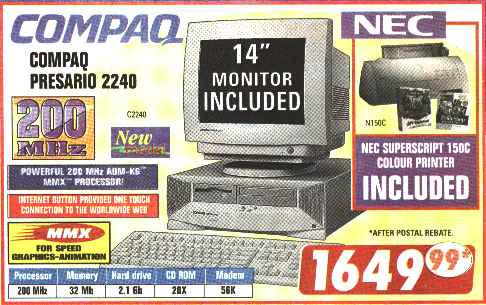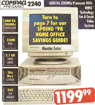 Compaq Presario 2240 with the AMD K6 200 multimedia processor, for $1199 (98-03-04 Future Shop)