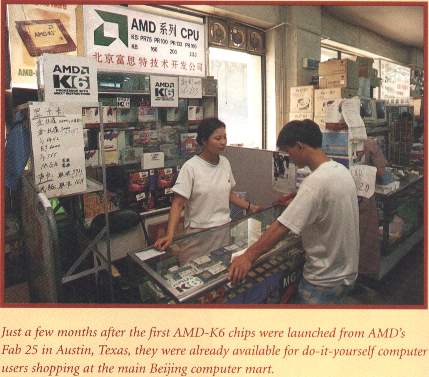 Just a few months after the first AMD-K6 chips were launched from AMD'S Fab 25 in Austin, Texas, they were already available for do-it-yourself computer users shopping at the main Beijing computer mart.