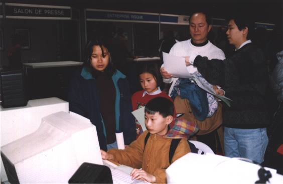 description: Father receiving AMD sales pitch as family watches son Descent away!